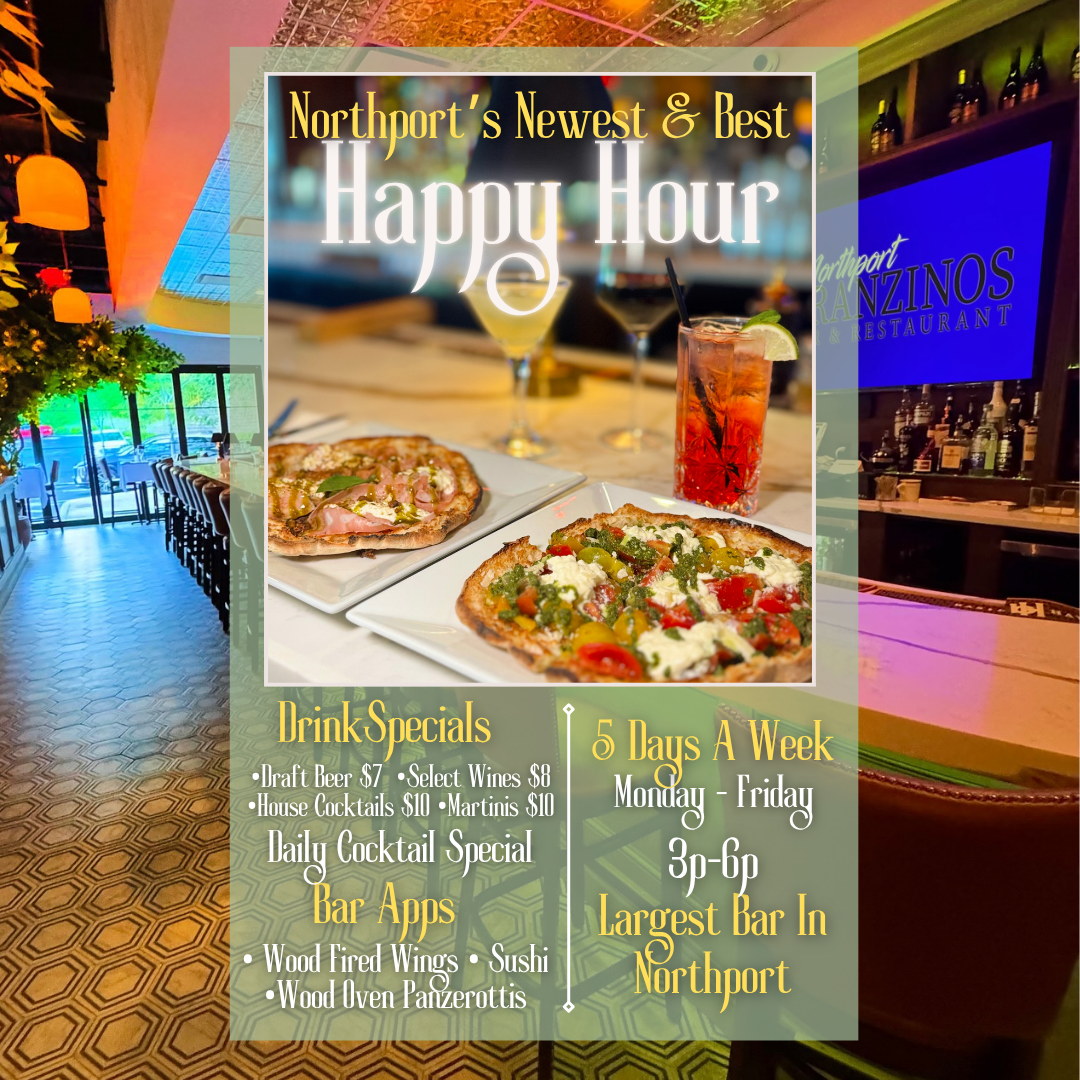 Discover the best of Branzinos Seafood & Italian Restaurant & Bar at our newest in Northport and our flagship home in Huntington. Both restaurants bring you the same elevated dining experience you love — fresh seafood, prime steaks, and handmade pastas — now with even more local convenience. Our Northport location exclusively features signature sushi and house-made pizza, adding a fresh new twist to our classic menu with the best Happy Hour at the “Largest Bar In Northport”. Whether you’re visiting Huntington or near Northport Village, Branzinos delivers exceptional cuisine, attentive service, and a stylish atmosphere that have made us a Long Island favorite.