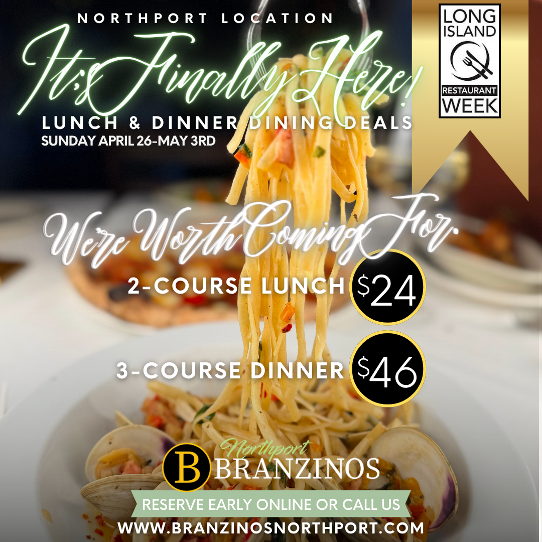 Enjoy a quick, delicious midday escape with the Local Express Lunch at Branzinos Northport. Available Monday through Friday from 11:30AM to 3 PM, this two-course lunch menu features chef-selected seasonal dishes for just $24.95 per person — fresh, flavorful, and perfect for a casual dining experience and great for business meetings and friendly gatherings..