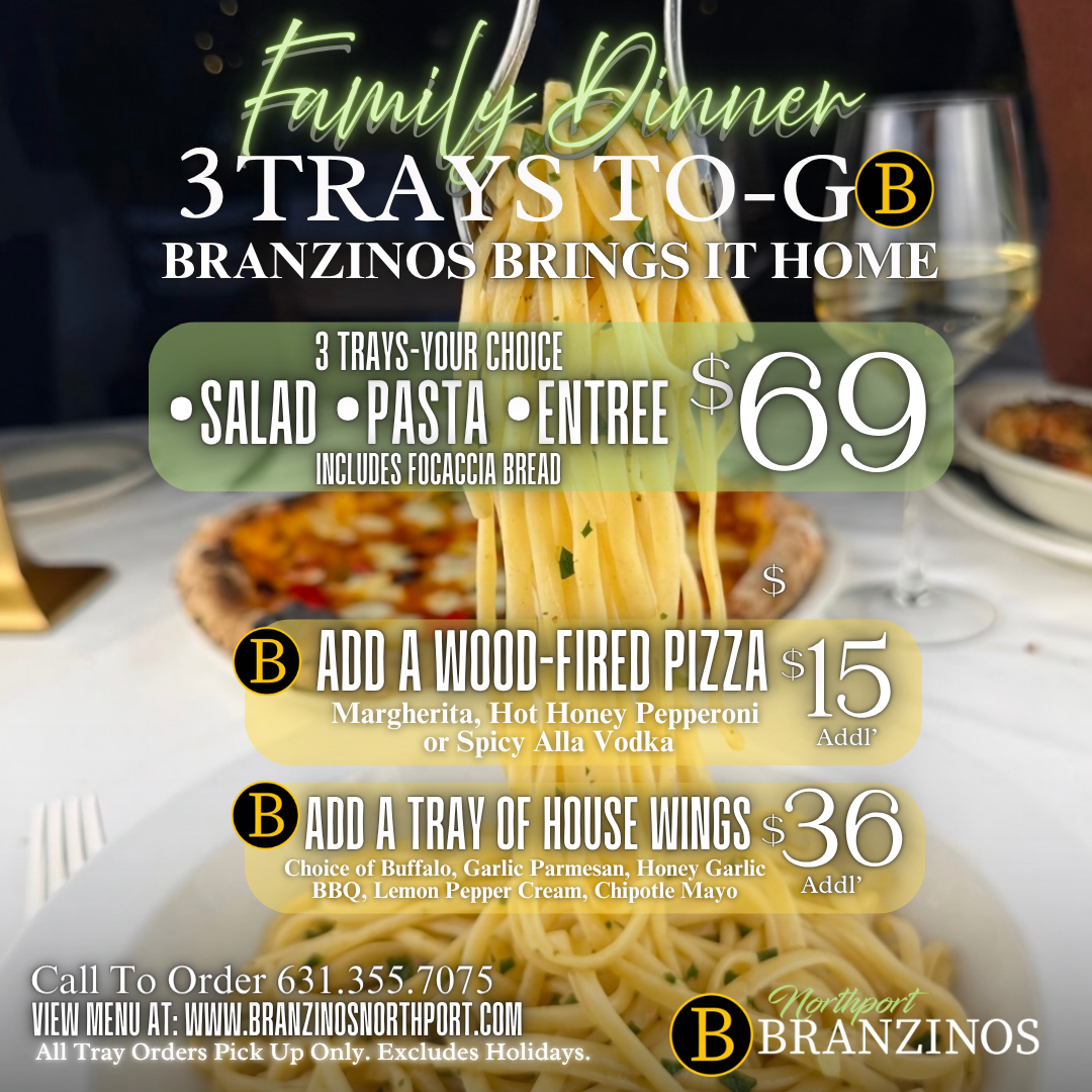 “At our newest Northport location, Branzinos Restaurant & Bar showcases weekly chef-curated specials crafted with locally sourced ingredients. Each week, our culinary team highlights the best of Long Island’s seasonal dishes that complement our fresh seafood, premium steaks, authentic pastas, homemade pizza, gourmet salads and signature sushi. Our weekly specials invite guests to discover something new with every visit while celebrating the vibrant flavors of our community.” Ask us about our gluten-free & vegetarian options. We have something for everyone.