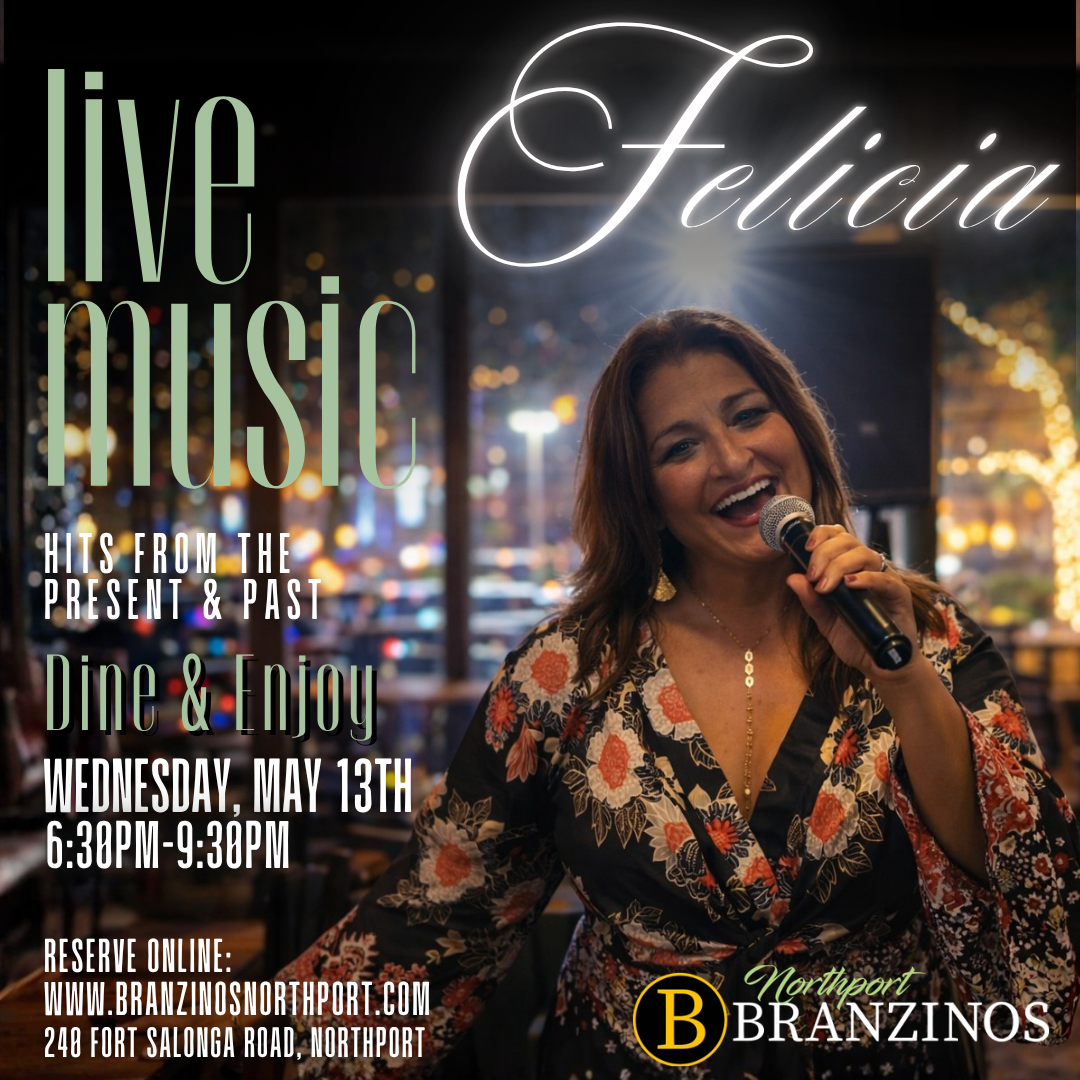 Join us at Branzino’s Northport for an unforgettable evening of live entertainment with Felicia – bringing you all your favorite songs old and new.